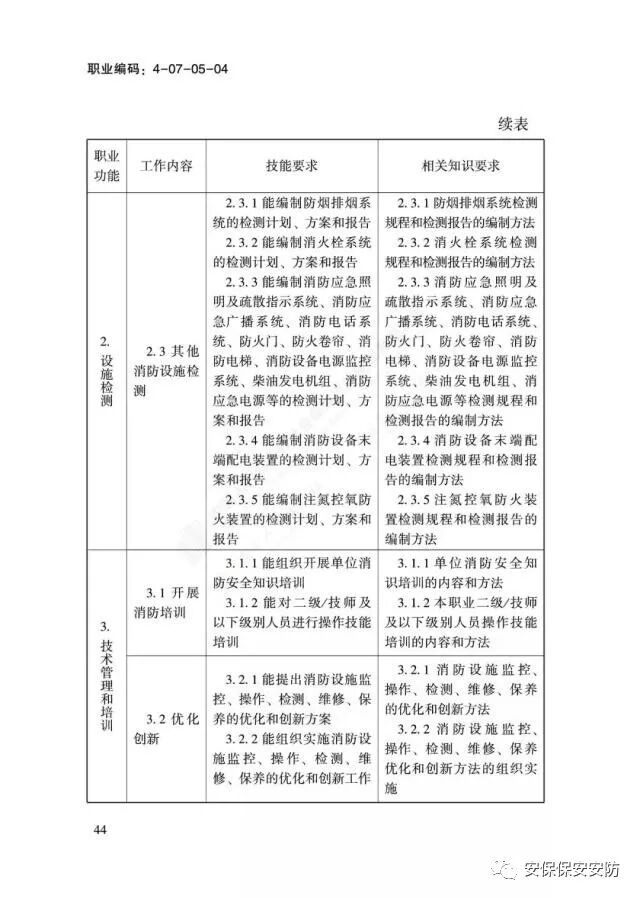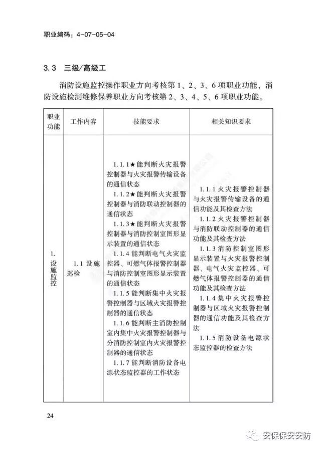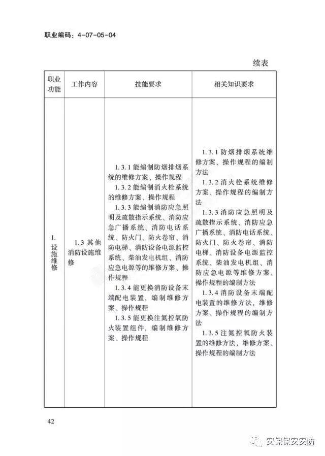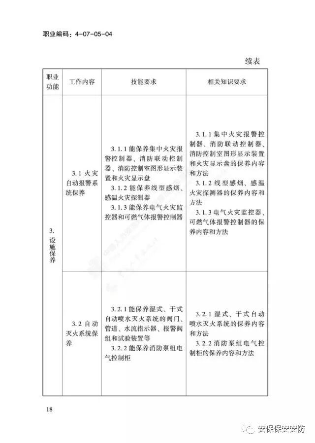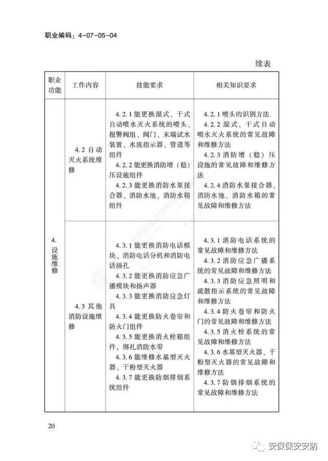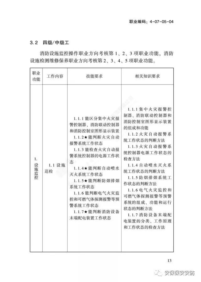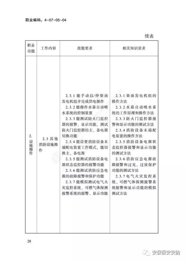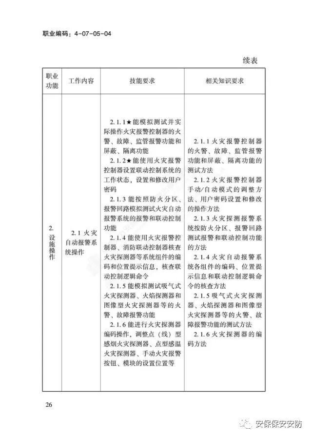 国家职业技能标准《消防设施操作员》2020年1月1日起实施