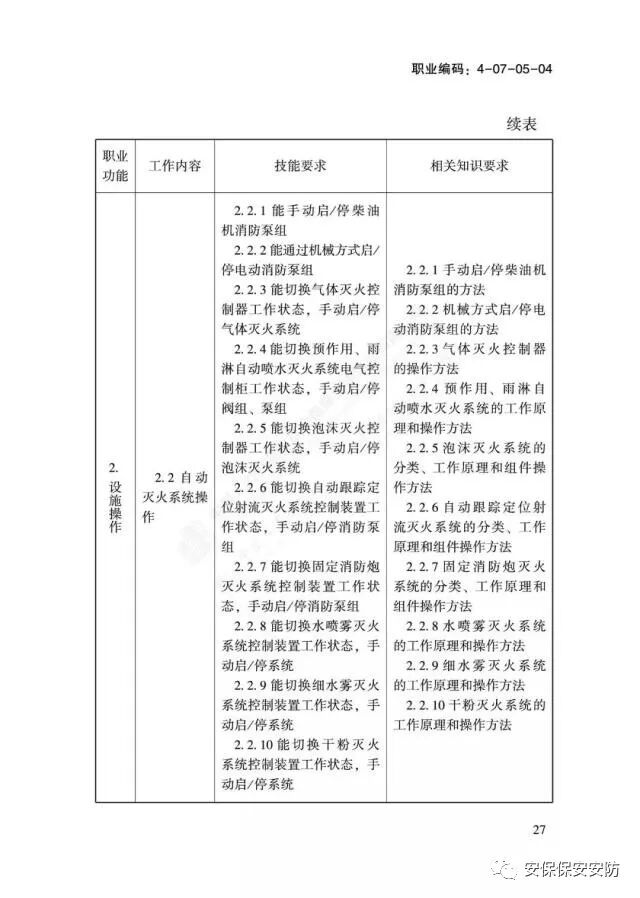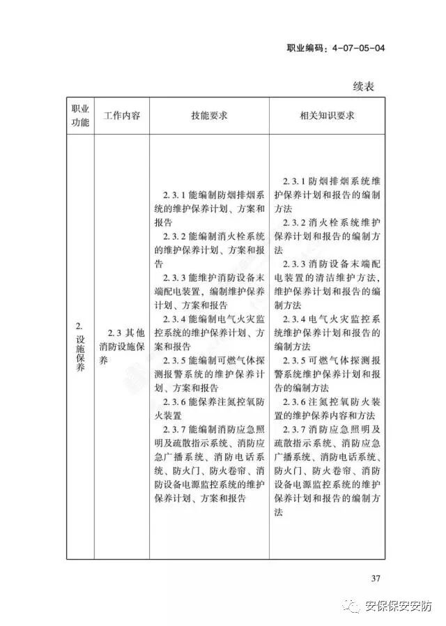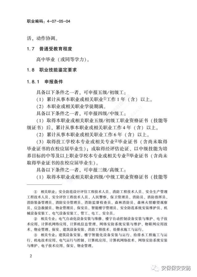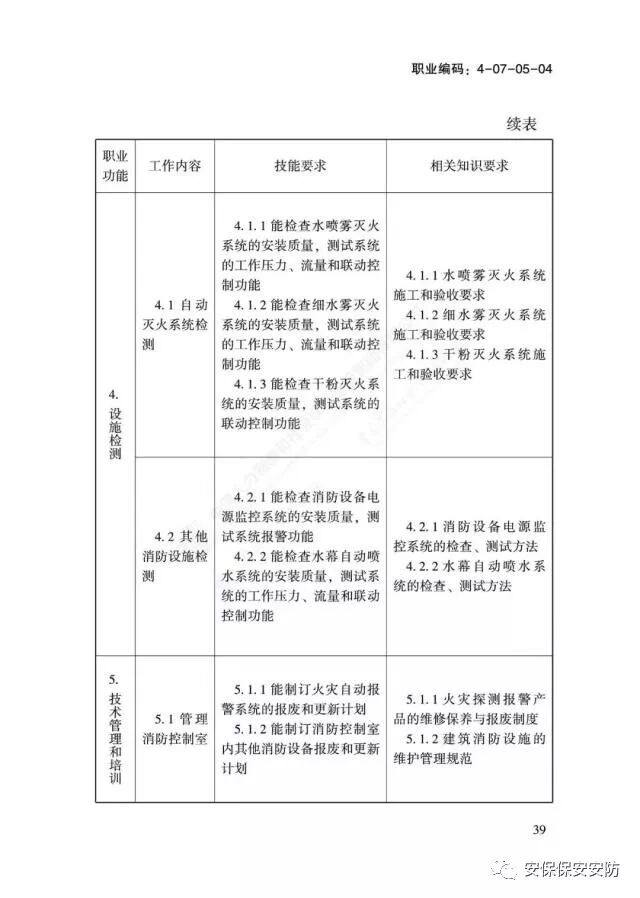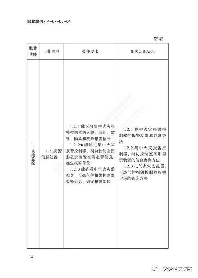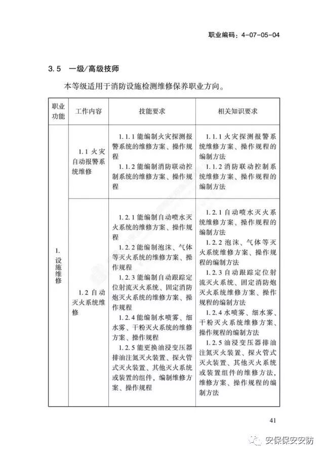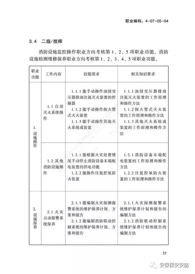 国家职业技能标准《消防设施操作员》2020年1月1日起实施