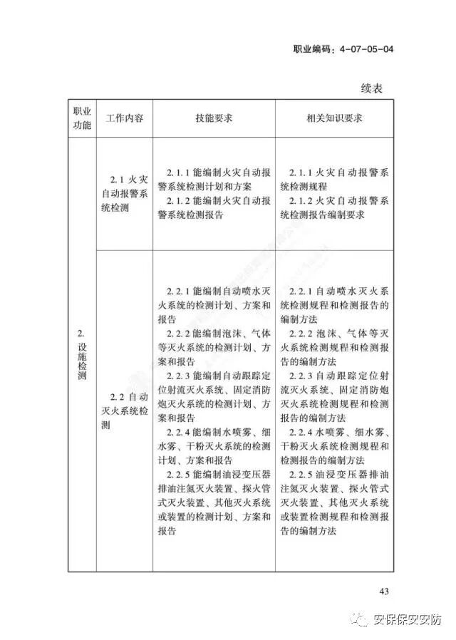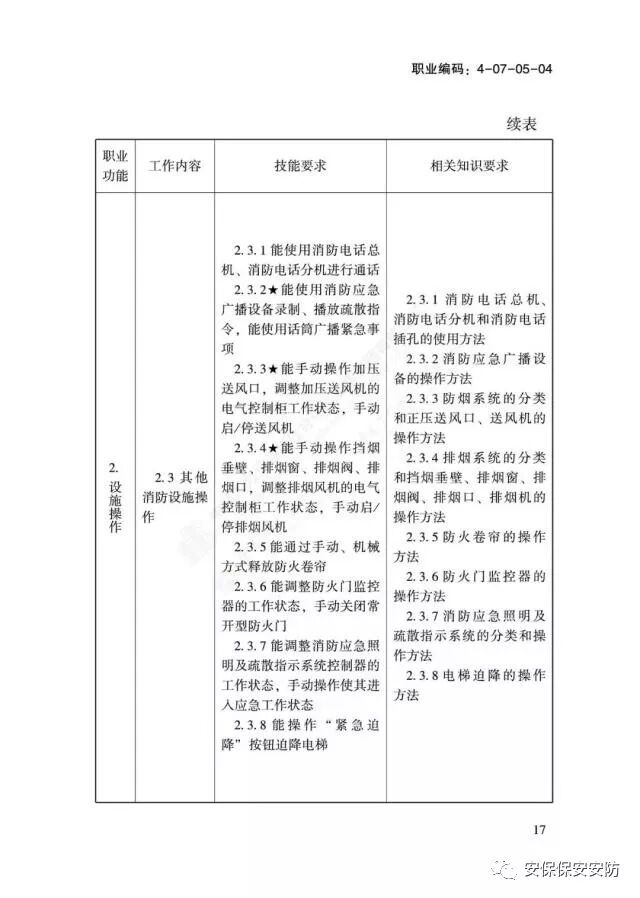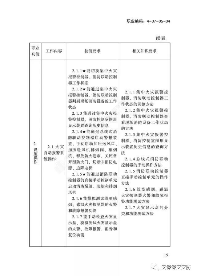 关于颁布消防设施操作员国家职业技能标准的通知