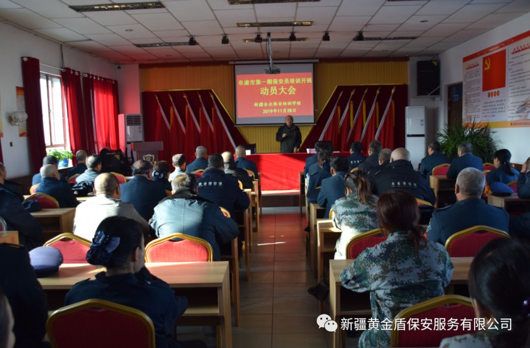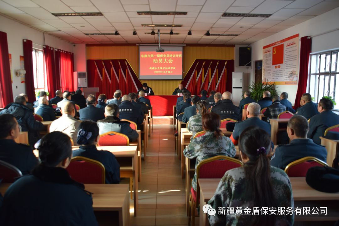 2019年11月28日,新疆黄金盾保安服务有限公司保安培训班动员大会在四楼会议室举行,60余名学员参加了动员大会,阜康市治安大队任伟华同志代表治安大队出席了会议。