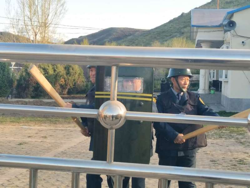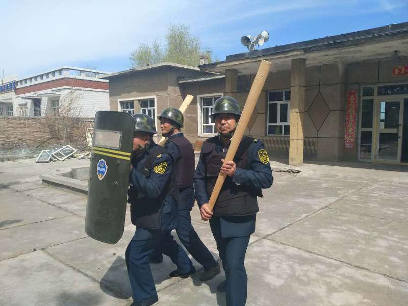 为进一步提升反恐防暴处突快速反应能力,深入推进安保工作需要,新疆黄金盾保安服务有限公司奇台分公司5月1日开展应急处突演练。演练分为发现可疑人员、联动汇报、现场处置、后续处理等步骤,保安员履职尽责、密切配合,形成最大合力,手持大头棒、盾牌、钢叉死守大门等待支援。
