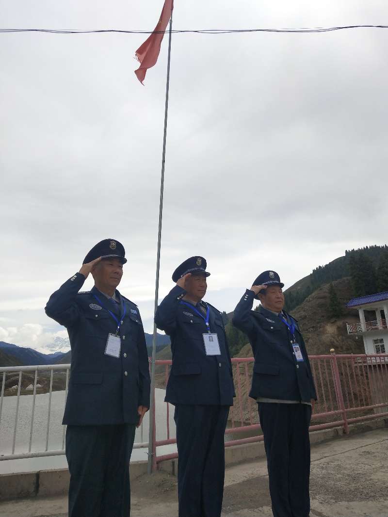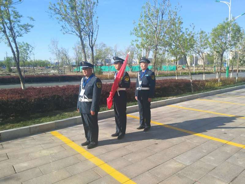 5月1日,新疆黄金盾保安服务有限公司奇台分公司保安员开展升国旗仪式
