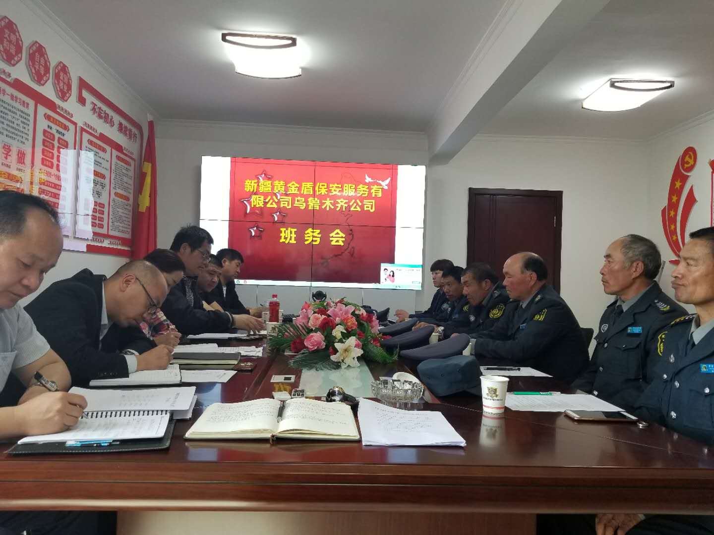 2019年5月10日,新疆黄金盾保安服务有限公司乌鲁木齐公司召开班务会