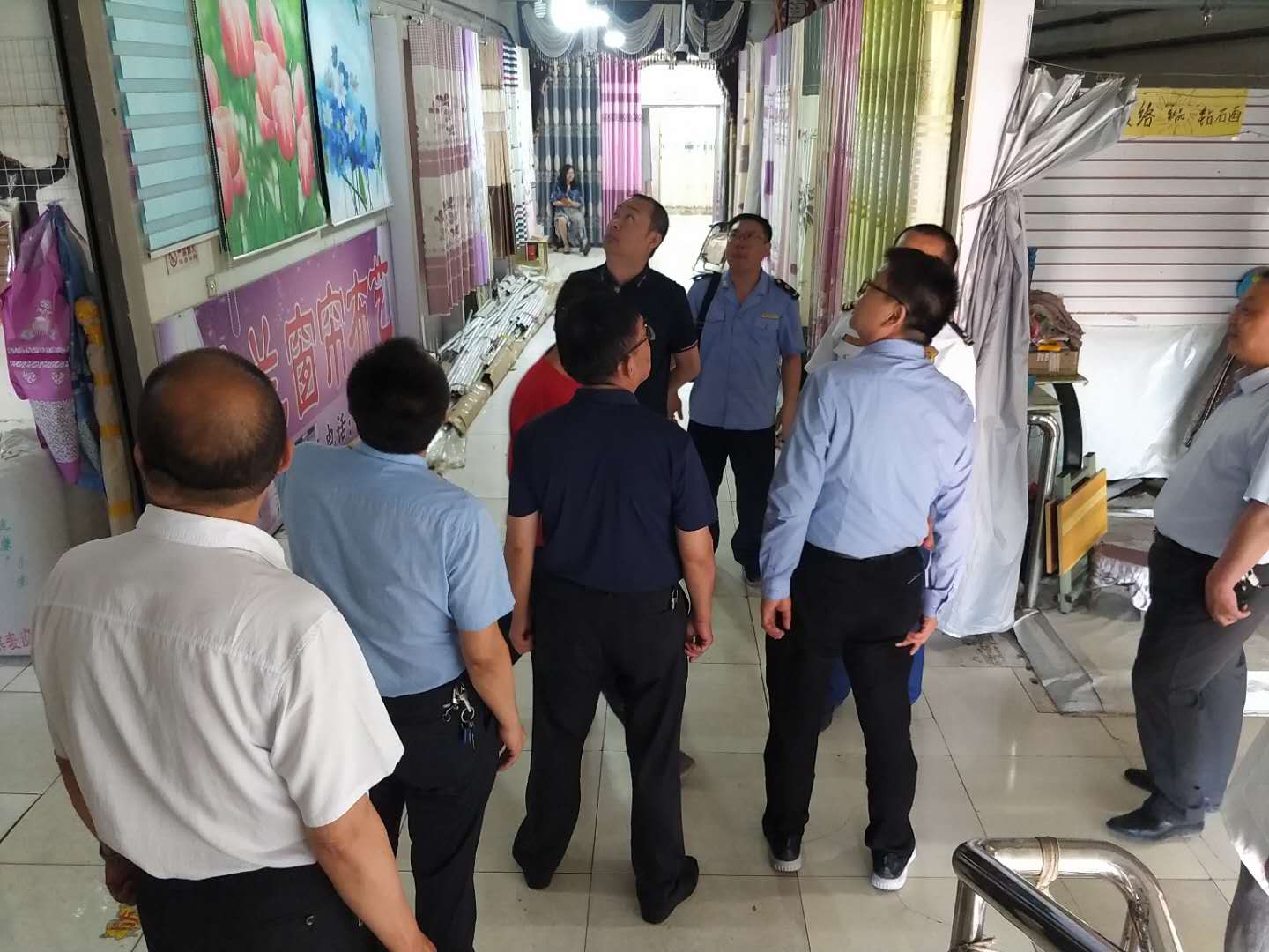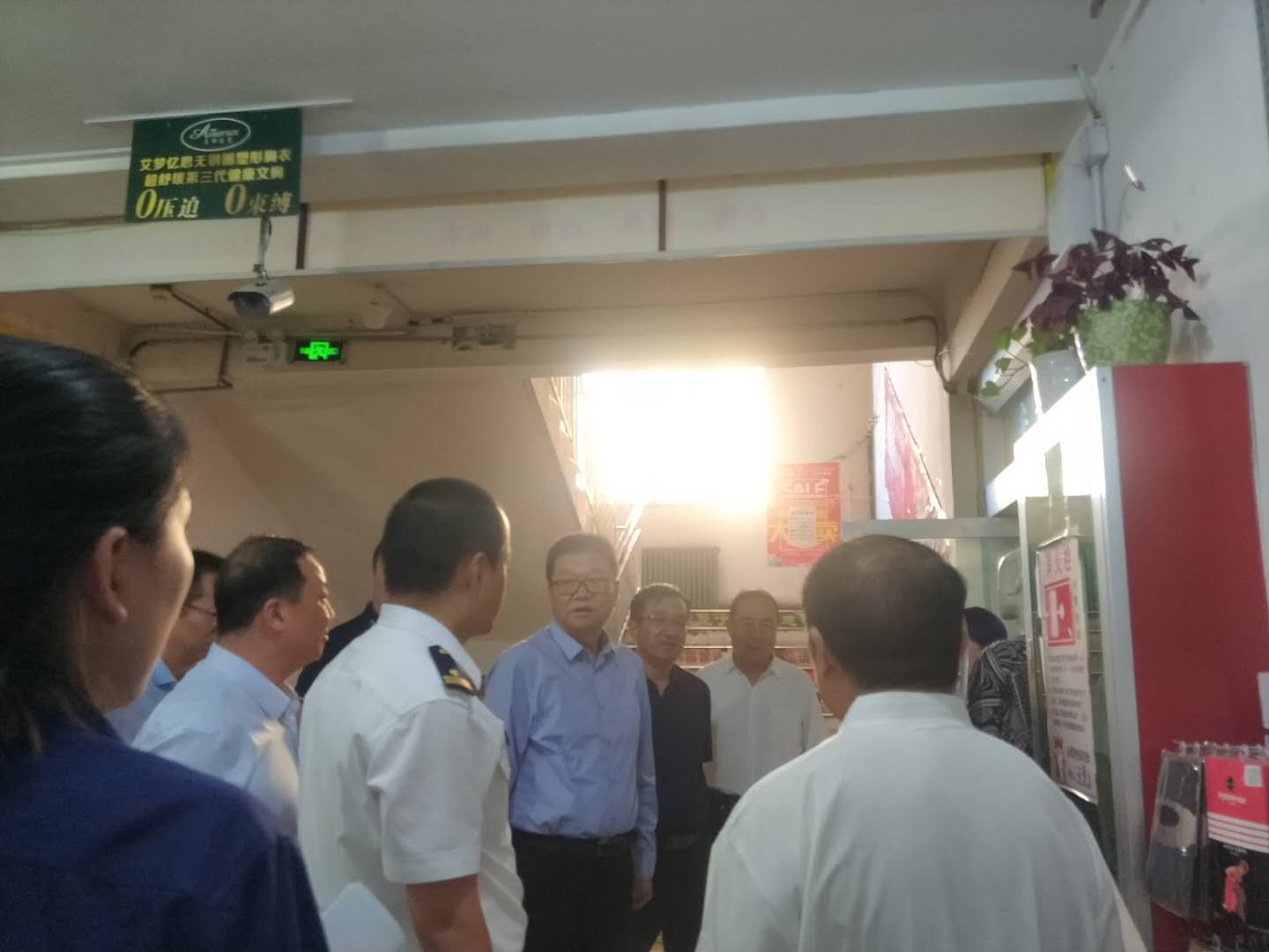 6月17日,阜康市市长、市场管理监督局局长、消防大队一行人到商贸大厦检查指导新疆黄金盾保安服务有限公司物业管理工作,阜康分公司朱经理陪同。